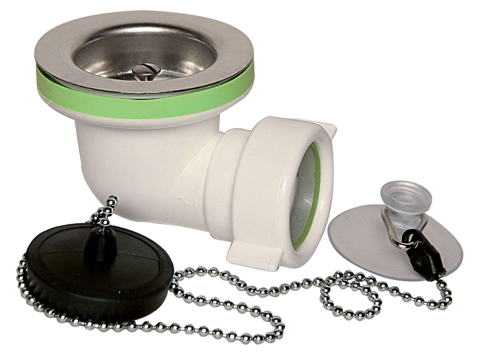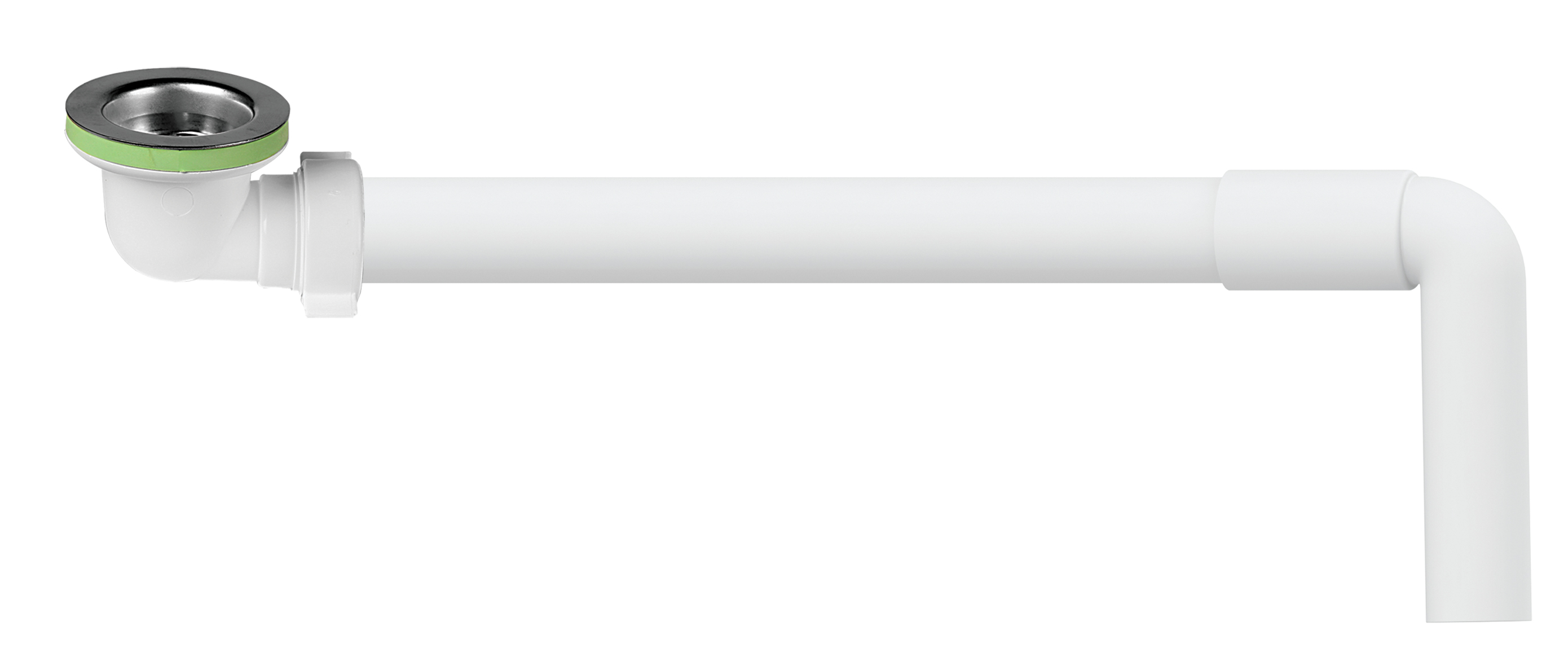 Badkarsavslopp med flexibel (mjuk) vinkel ner till golvbrunn som underlättar montering och rengöring. Propp och kedja ingår.