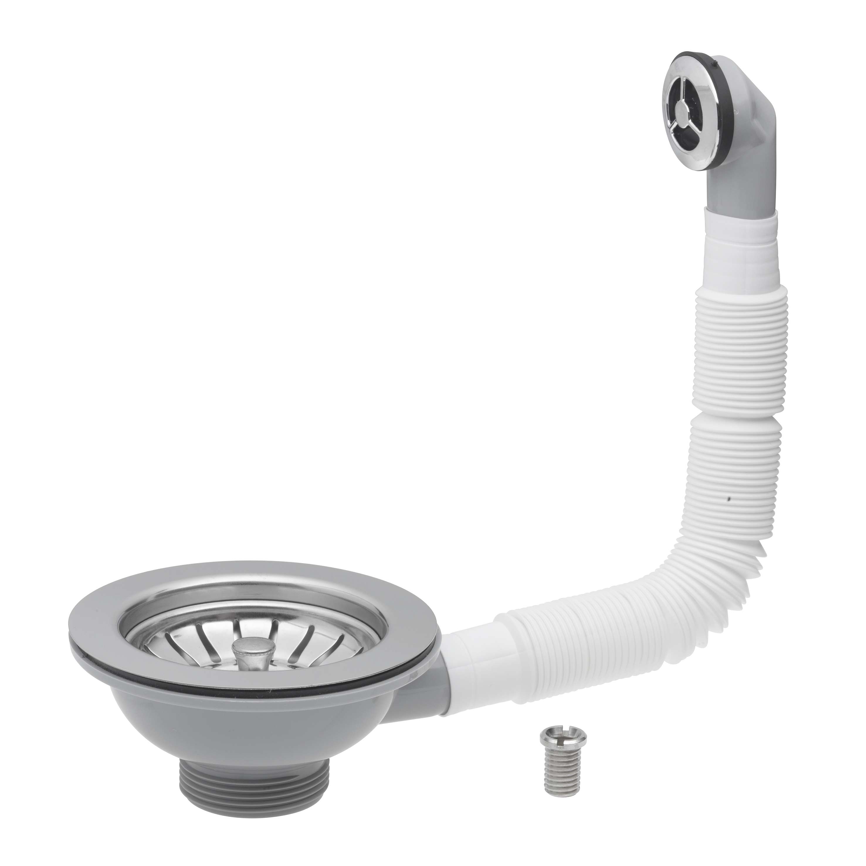 Korgventil Ø 115mm med runt bräddavlopp för diskbänkar med hål Ø 85-91mm. Passar till Contura Pro Rotlås. Dimension G40.