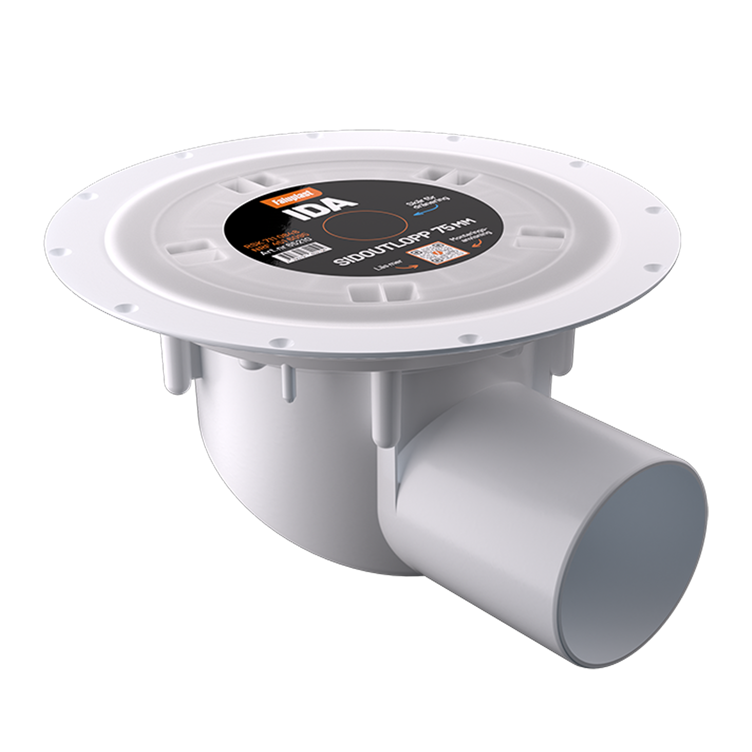 Ida har ett Ø75 mm utlopp och ett kraftfullt flöde på 1,2 liter per sekund. Med hjälp av Faluplast unika vattenlås så blir IDA i princip helt självrensande.