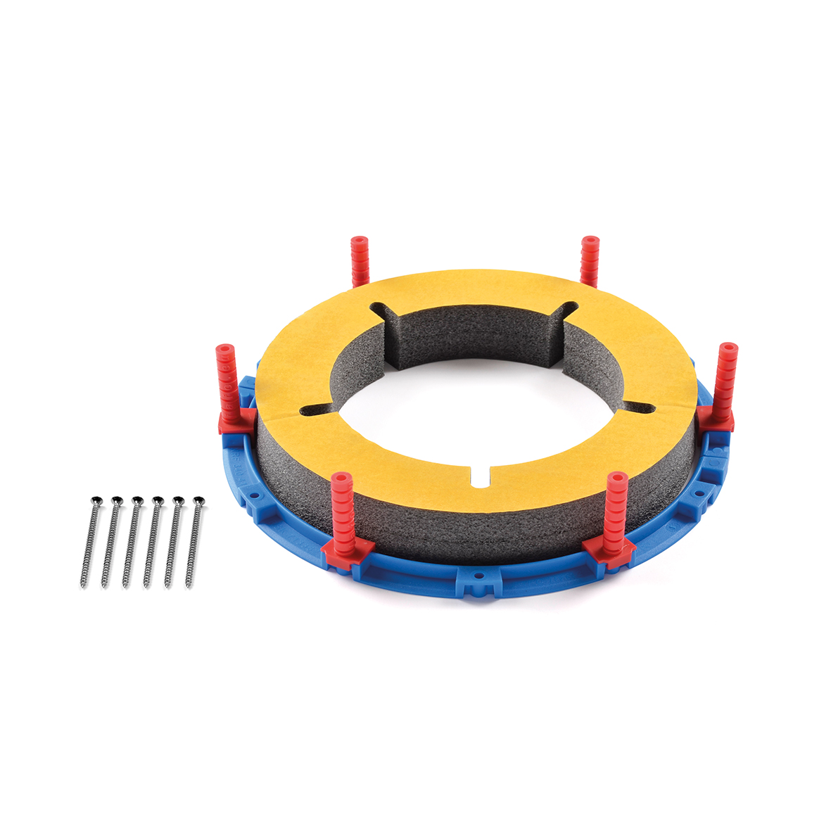 Förhöjningssatsen består av: Distansring JAFO Flyt 12, 6 st kapbara röda förhöjningsben i plast och tillhörande skruvar samt 1 st självhäftande tätningslist.