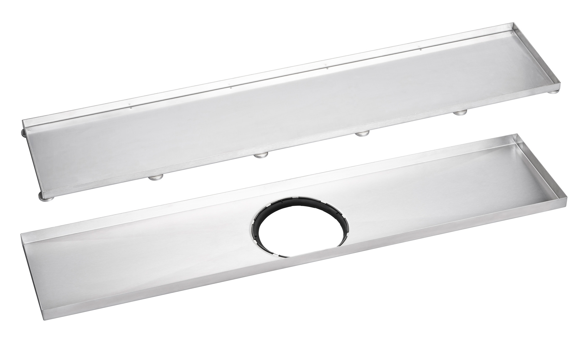 Vieser Line tiled insert sil erbjuder en enkel, stilig lösning för valfria klinker på toppen, både vad gäller storlek och tjocklek. Silens material är rostfritt stål.