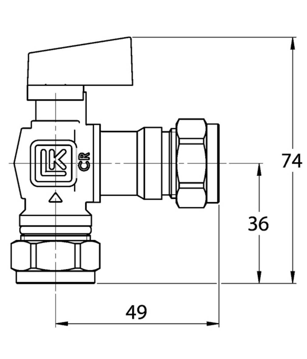 Påfyllnadsventil som innehåller separat avstängning- och backventil. Utformningen gör att den passar speciellt ihop med övriga LK Ventiler.