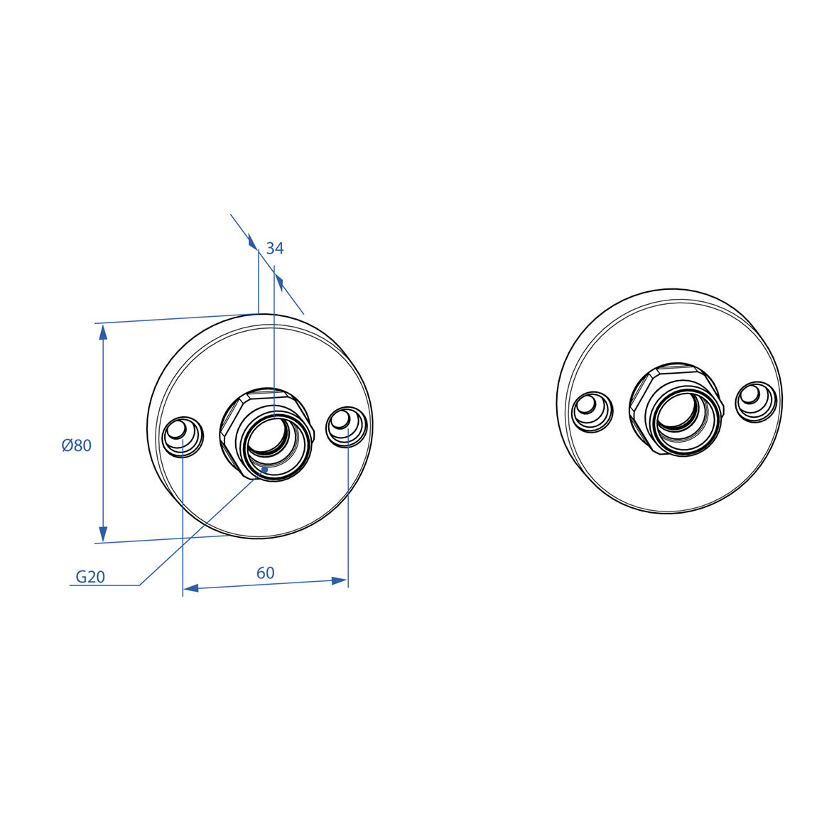 Förkromat enkelt blandarfäste 150 cc för dold rördragning. Anslutning G20 för 15x2,5 Pex, inklusive kopplingssats. Anpassat efter de nya branschreglerna 2021, med plats för tätskikt. Skruvhål:60cc. Mått:Ø80 mm. 2-pack.