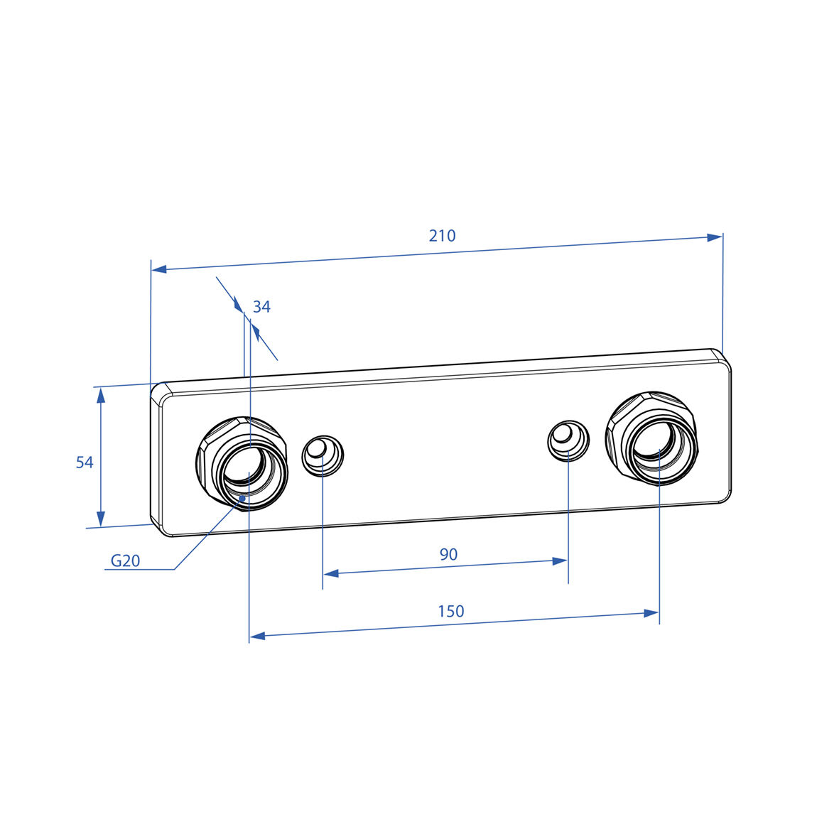 Blyfritt och förkromat blandarfäste 150 cc, som är avsett för dold rördragning. Ansluter med G20 till blandaren. Demonterbara kopplingar för 15x2,5 Pex och VVS-skruv ingår. Anpassad efter de nya branschreglerna 2021, med plats för tätskikt. Mått:210x54 mm. Skruvhål:90cc.