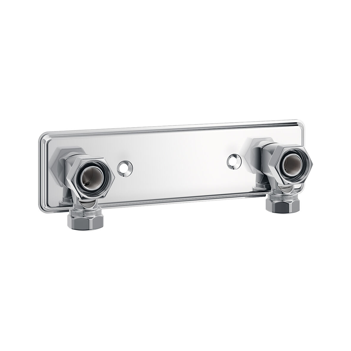 Blyfritt och förkromat blandarfäste 160 cc, som är avsett för dold rördragning. Ansluter med M26x1,5 till blandaren. Demonterbara kopplingar för 12/15 Cu och VVS-skruv ingår. Anpassad efter de nya branschreglerna 2021, med plats för tätskikt. Mått:210x54 mm. Skruvhål:90cc.