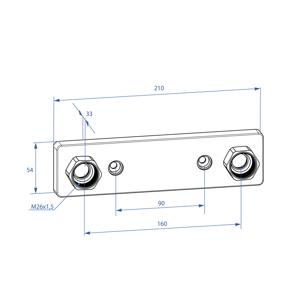 Mattsvart, blyfritt blandarfäste 160 cc, som är avsett för dold rördragning. Ansluter med M26x1,5 till blandaren. Demonterbara kopplingar för 16x2,0-2,2 Pex/Alupex/Pb-rör och VVS-skruv ingår. Anpassad efter de nya branschreglerna 2021, med plats för tätskikt. Mått:210x54 mm. Skruvhål:90cc.