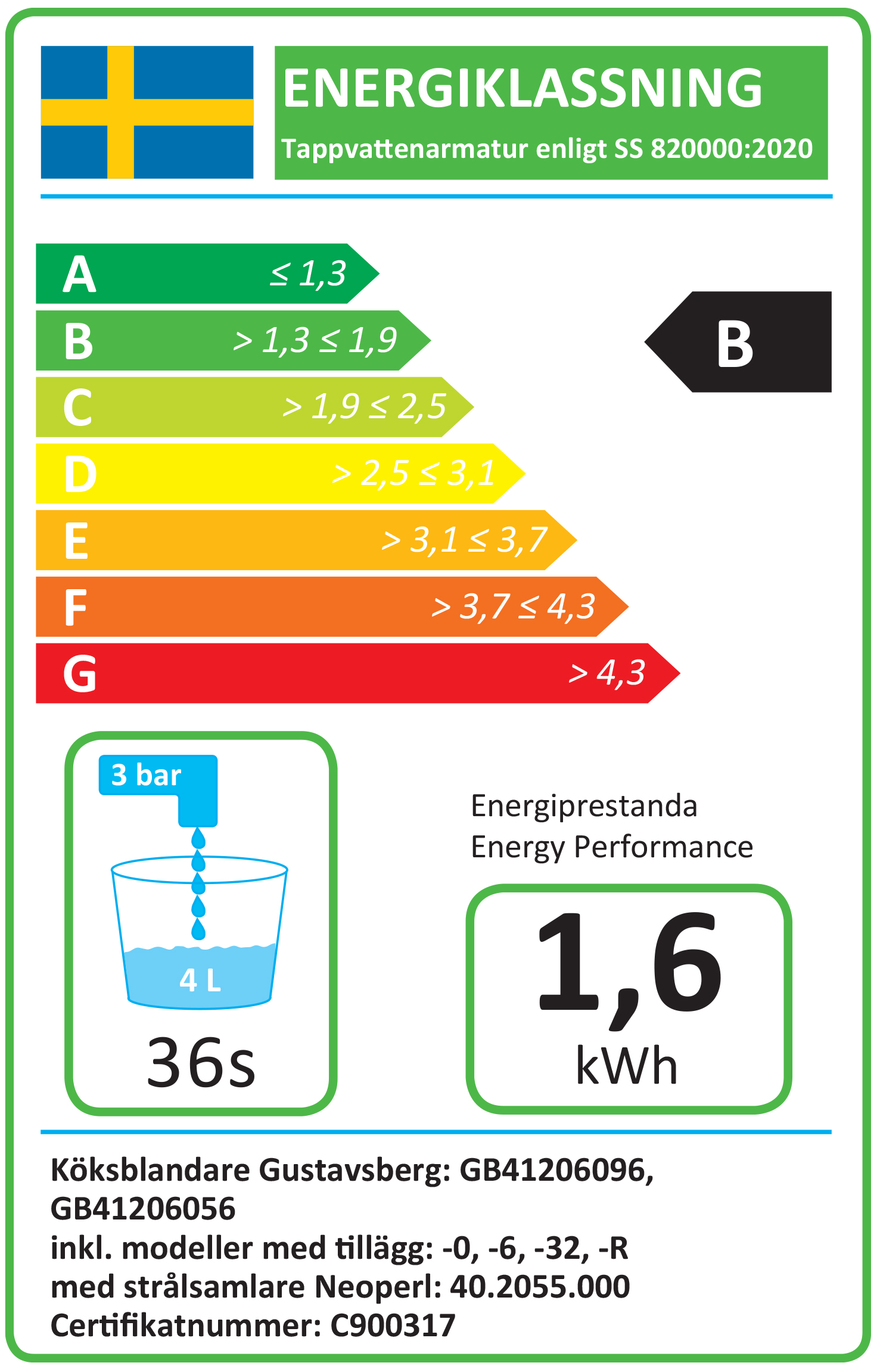Greppvänlig spak med tydlig färgmarkering för varm- och kallvatten