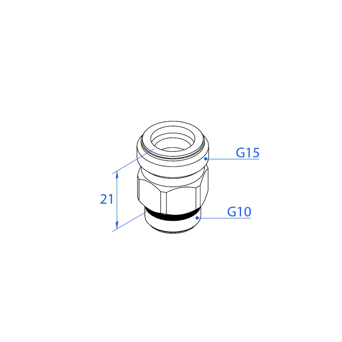 Blyfri och förkromad övergångsnippel G10 utv - G15 utv med planadapter. Tillbehör för extra anslutning till Trio Perfektas fördelare.