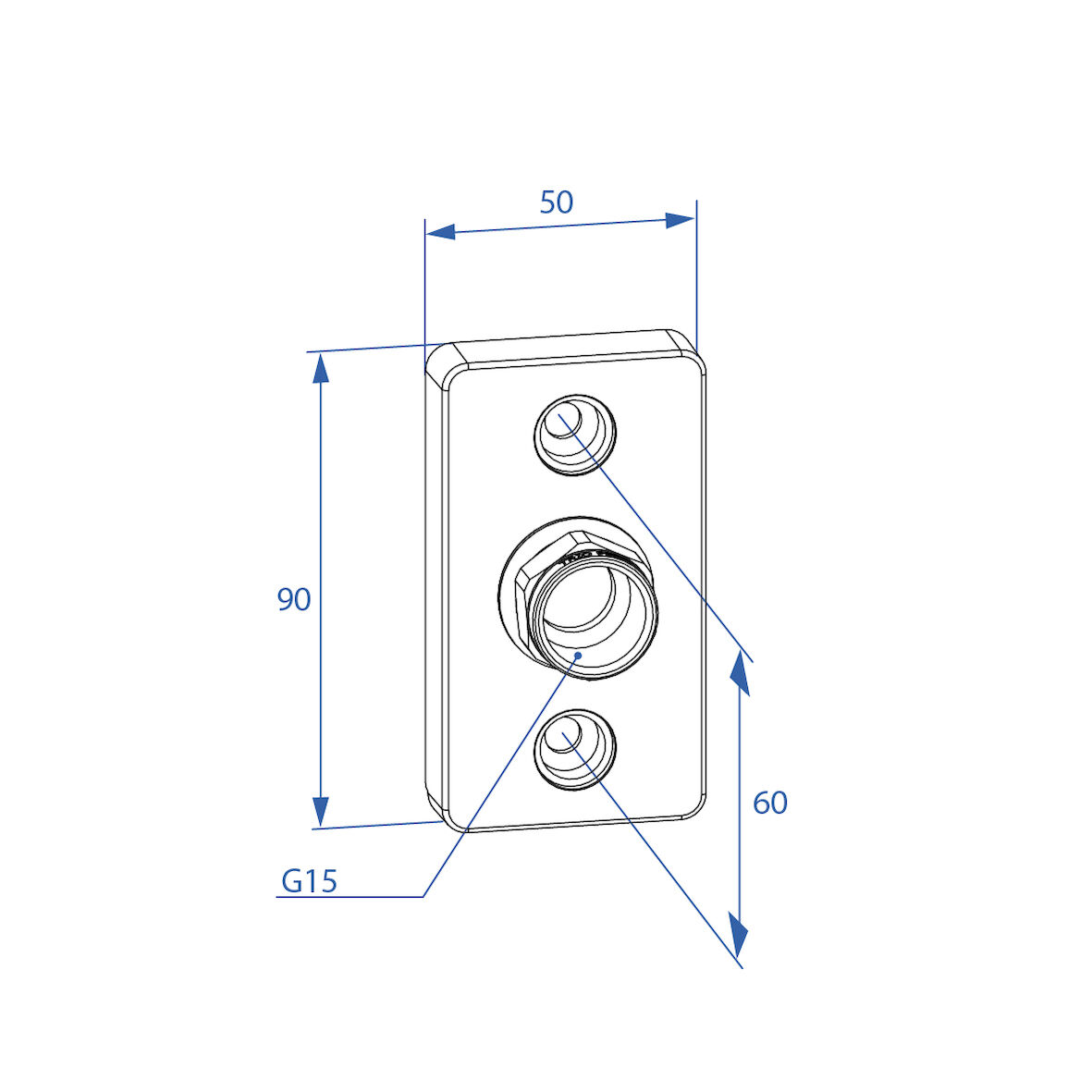 Blyfri och förkromad väggbricka med invändig lekmutter, för ett rör. Avsedd för 15x2,5 x G15 Pex. Demonterbara kopplingar och VVS-skruv ingår. Väggbrickan passar till alla nipplar, T-kopplingar, vinklar och kulventiler med utvändig G15-gänga, invändig Ø15mm och en konvinkel mellan 20-30, se bild. Anpassad efter de nya branschreglerna 2021, med plats för tätskikt. Skruvhål:60cc. Mått:50x90 mm.
