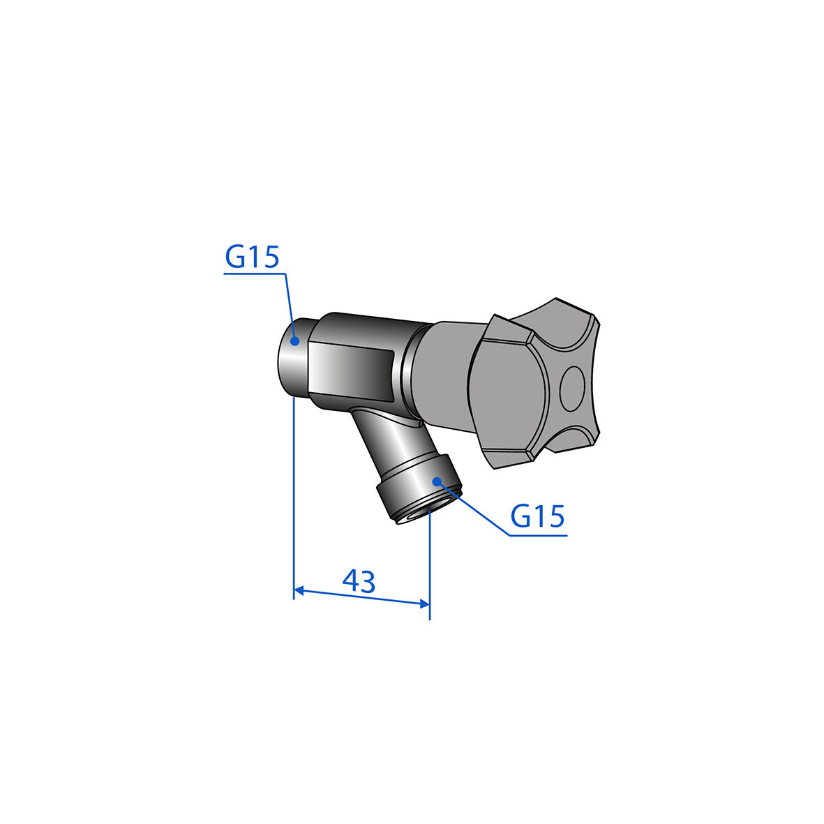 Tappventil kort modell, G15. Med typgodkänd backventil och slangkoppling. Skyddsklass EB. Förkromad.