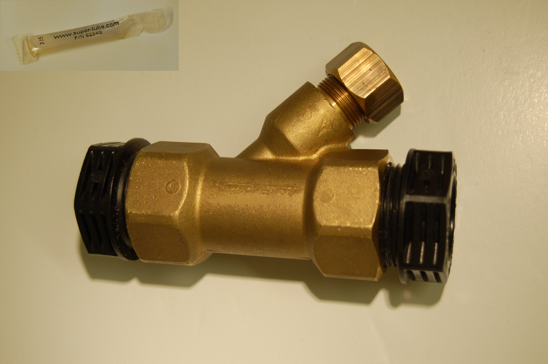 Den koniska packningen är slitsad för att underlätta montaget på värmekabeln. Konstruerad för vattentryck, max 16 Bar. Hus och mutter av mässing CW626N lämplig för tappvatteninstallationer. Smörjmedel medföljer i förpackningen. Smörjning av låsmuttern och mässingshusets koniska insida är avgörande för produktens prestanda. Se till att medföljande smörjmedel används.