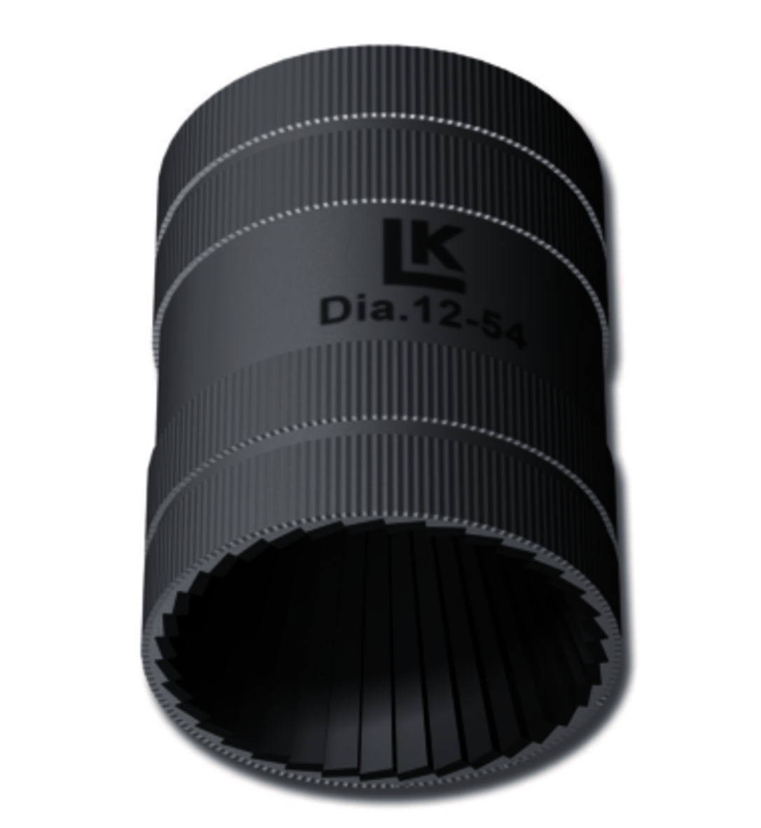 För in- och utvändig gradning av plast-, koppar- och stålrör, i alla dimensioner från 12 till 54 mm. OBS! För LK PAL-rör ska de särskilda kalibreringsverktygen användas.