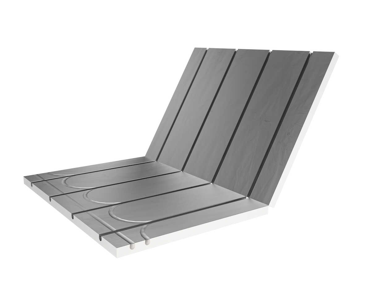 LK Golvvärme i utförande med LK CombiBoard EPS för förläggning på bärande golvkonstruktion. Systemet är uppbyggt med en isolerskiva i EPS-klass S300 försett med ett laminerat värmefördelningsskikt för optimal värmespridning. LK CombiBoard EPS har en högisolerande förmåga samt mycket goda egenskaper för kort- och långtidslast. EPS-skivorna är försedda med rörspår och integrerade vändspår.
