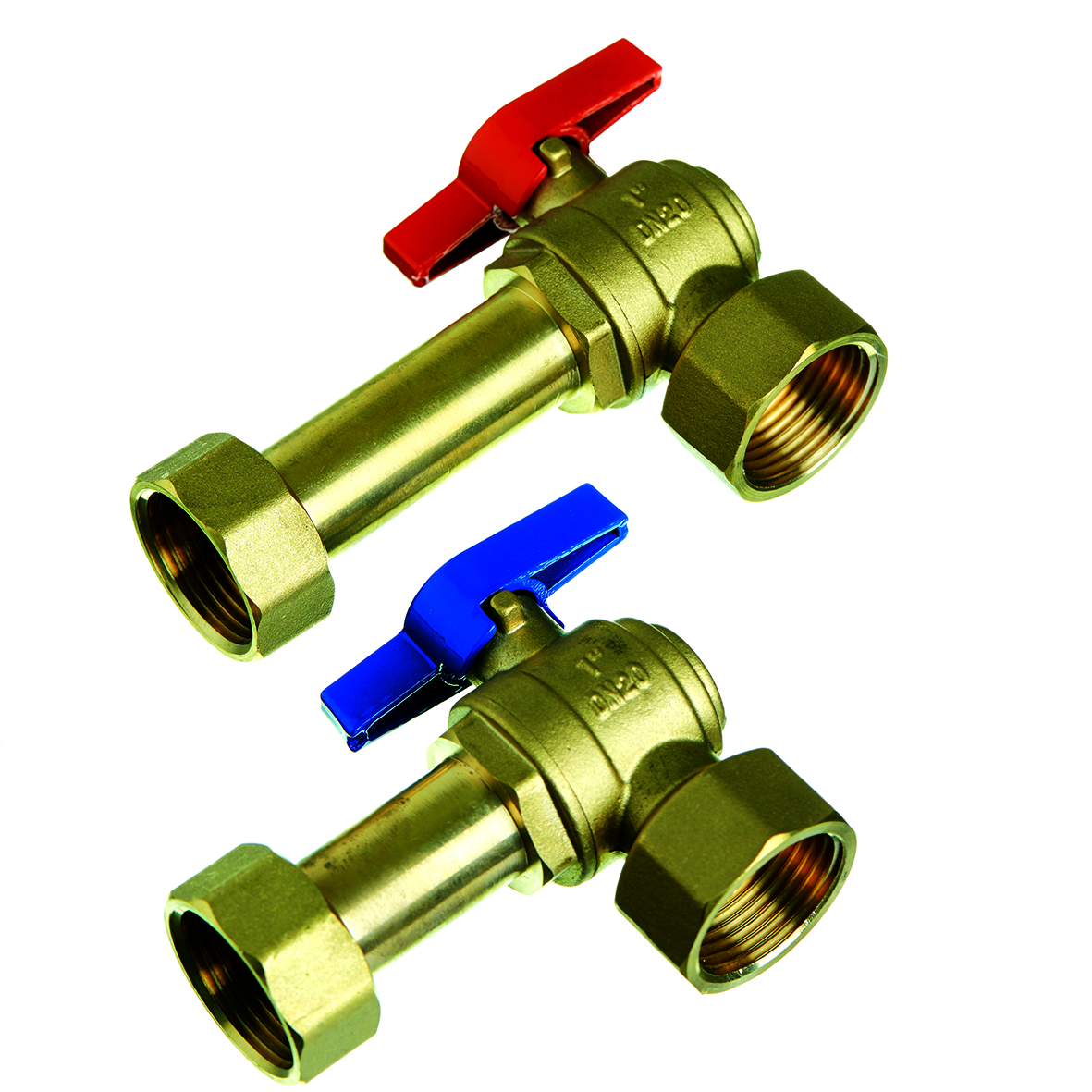 Roth vinkelventil G25, satsFör montage på golvvärmefördelare.Olika långa för att passa hålbild i fördelarskåp.Invändig gänga x lekande mutter.Innehåller: 1 par.