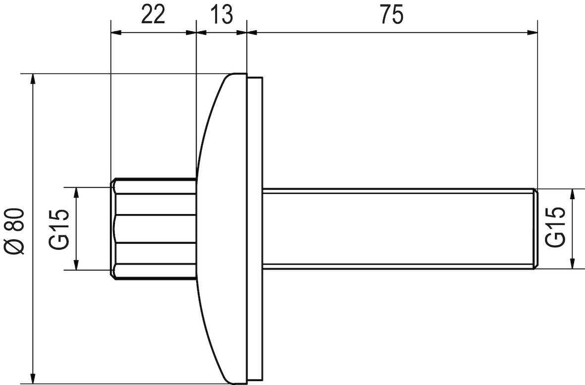 För samtliga LK Väggdosor. Levereras med förkromad väggbricka Ø 80 mm. Utv G15 för anslutning till väggdosans vinkelnippel, 75mm lång. Rak inv G15 gänga för t.ex. fortsatt rördragning.