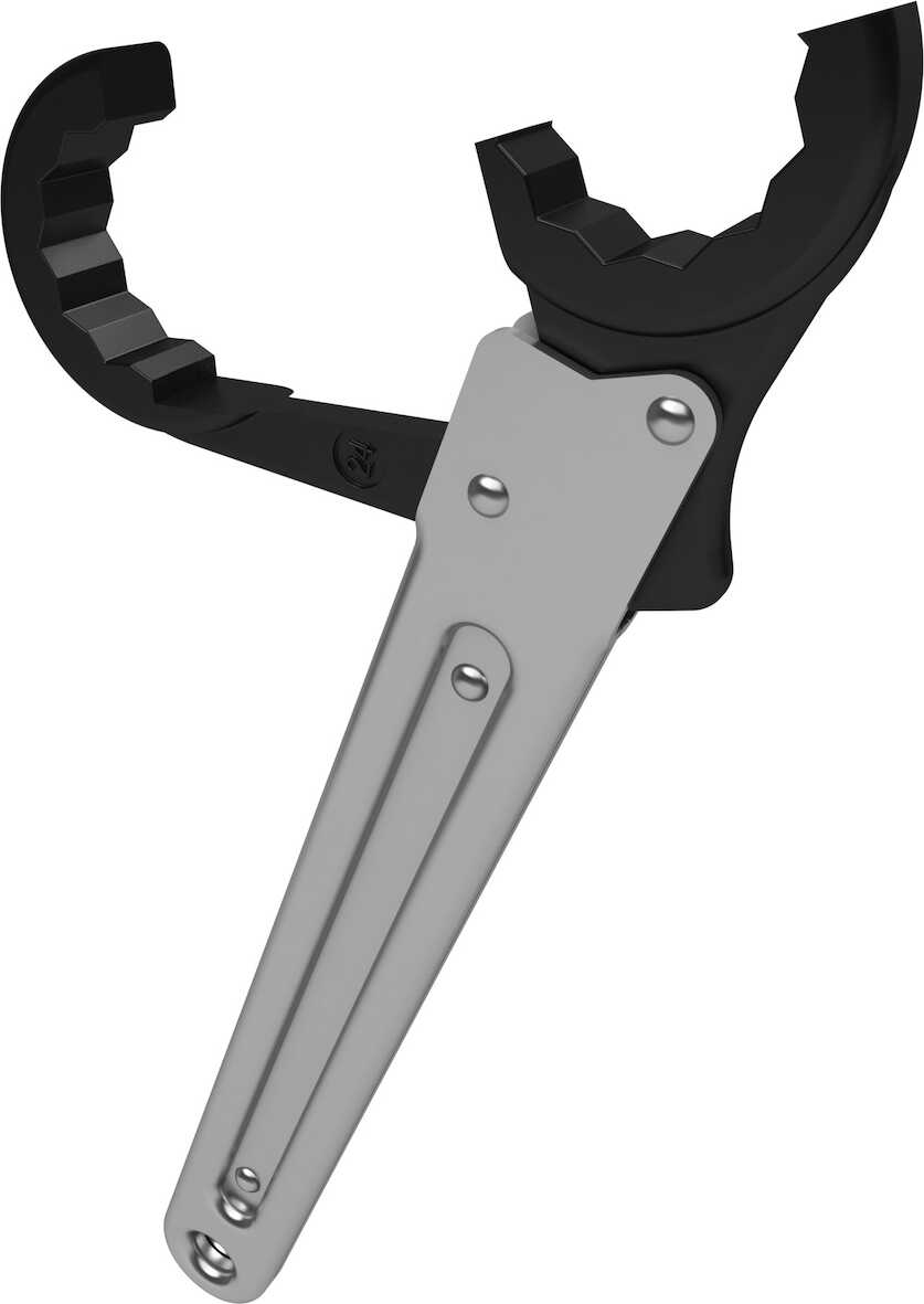 LK Kopplingsnyckel är en ringspärrnyckel som underlättar montage av anslutningskopplingar. Då nyckeln har en öppningsbar käft kan den med fördel användas där det är trångt.