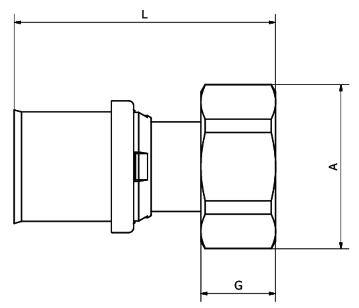 Presskoppling för sammanfogning av LK PAL samt LK PE-X Universalrör. Kopplingen har metallisk tätning mot LK Kulventil hög hals, M-Gänga som finns i motsvarande dimension M26 - M70. Alla dimensioner har gult kopplingshus.