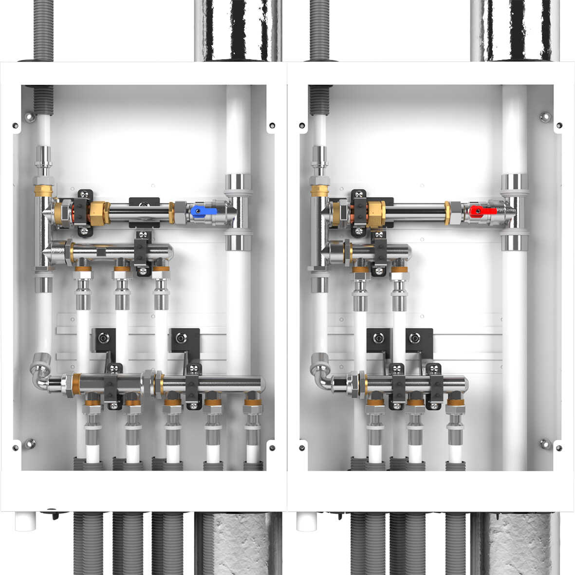 Ram/lucka för två stycken UNI 350 skåp monterade sida vid sida inbyggt i vägg. Ska ej monteras i rum med tätskikt på vägg.