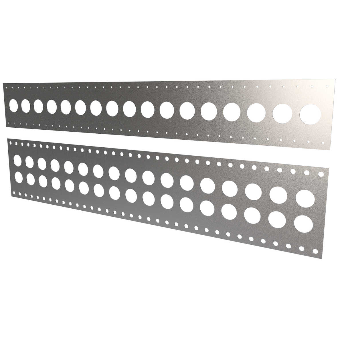 För LK Väggbockstöd Grip. Väggskenan finns i två utförande med enkel hålrad c/c 40 mm alternativt dubbel hålrad med c/c 40 mm i båda riktningarna.