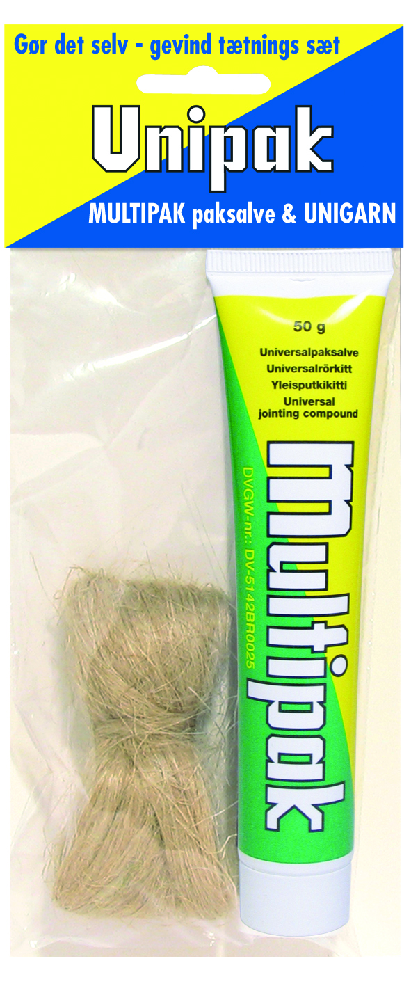 Ett ickehärdande tätmedel som användas ihop med lin till tätning av gängade rörkopplingar på anläggningaer för dricksvatten, gas, värme, hetvatte, tryckluft och kyling. Multipak är godkänt till dricksvatten och gas enligt EN 751-2 och DIN 30660