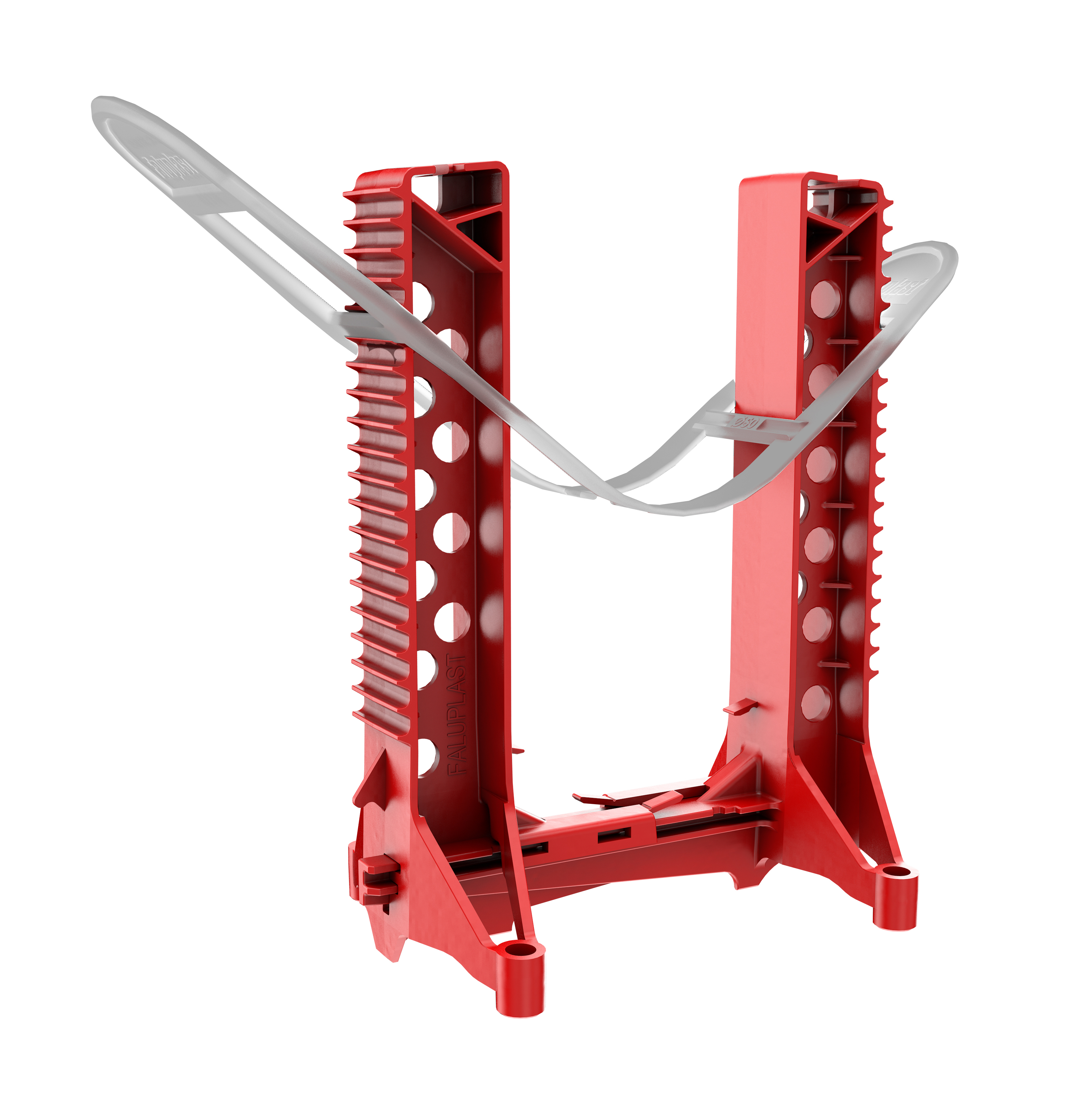 TRIFOT är ett valvstöd för montering av rör Ø 50/75/110mm. Det är enkelt att justera både upp och ner, kan spikas, märlas eller skruvas fast. Valvstödet har inga vassa kanter som kan skada, är lika starkt som ett metallstöd och tål över 100 kilos belastning. Passar både rör och muff.