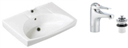 Innehåller: 1 IFÖ Spira tvättställ, FMM 9000E tvättställsblandare med silvippventil, 1 par vita konsoler 260 mm inkl. T-bult, Falu Flexi vattenlås, VVS-skruv 2x12, plastplugg (brun). Fd artnr 760128X