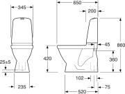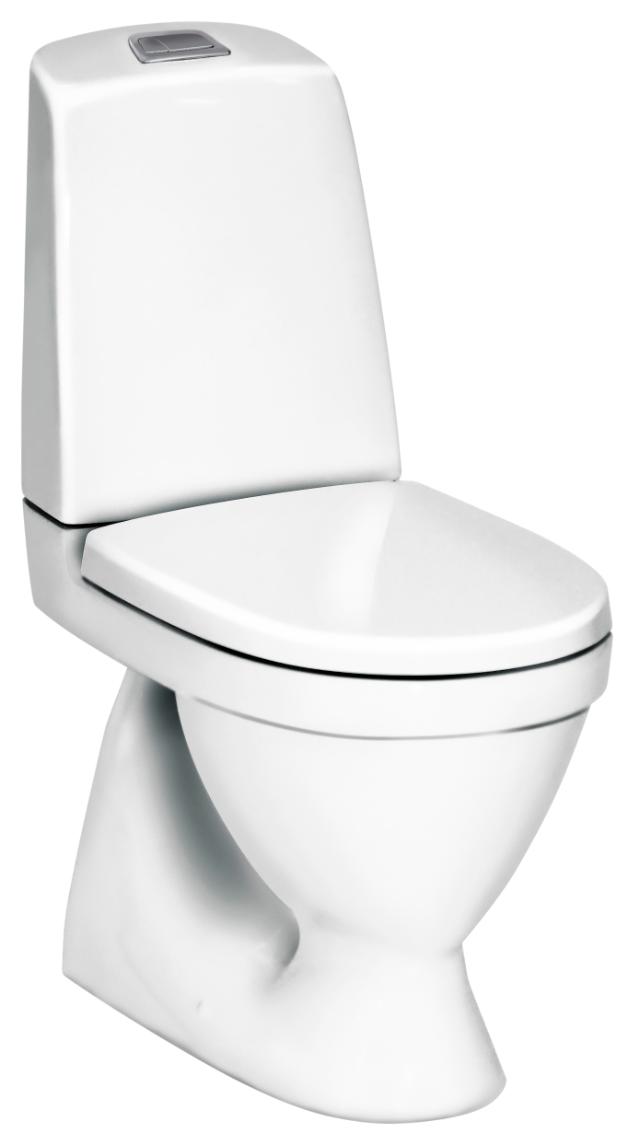 Toalettstol med släta ytor. S-lås för golvavlopp. Med Hygienic Flush för enklare rengöring och bättre hygien.