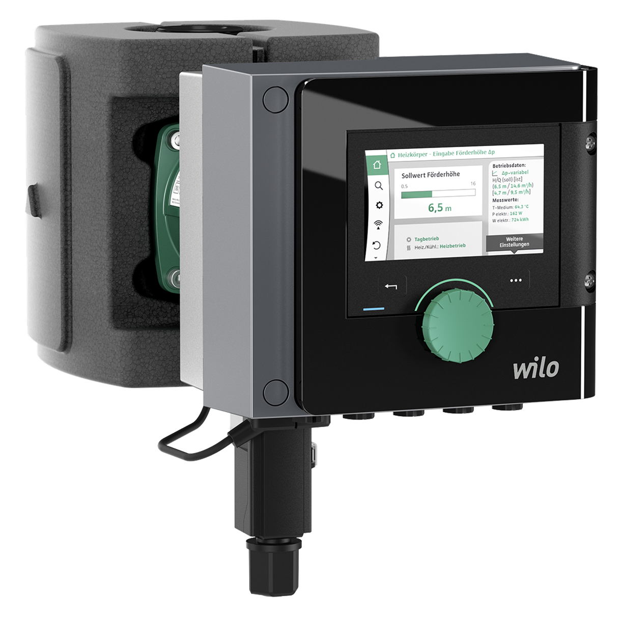 Våt smart-pump i enkelutförande, levereras komplett med inbyggt motorskydd, larmutgång, anslutning 0-10 V, till-frånslag av pump, extern driftindikering. Försedd med permanentmagnetmotor, funktion för flödesbegränsning och påbyggd frekvensomformare. Mätning av kyl- och värmeenergi möjlig tillsammans med sensor (tillbehör). Energioptimeringsfunktion Dynamic Adapt Plus. Tillsammans med CIF-modul (tillbehör) förberedd för anslutning till byggnadsautomation, gränssnitt CAN, LON, BACnet eller Modbus.