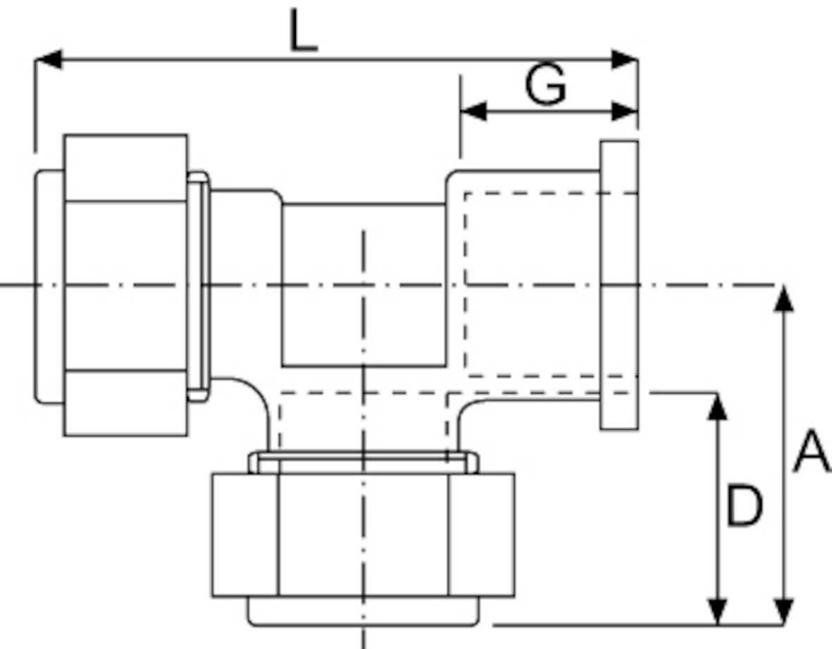T-koppling, 15x15mm x G15, klämring tappvatten/värme/luft, 2klämring x invändig gänga