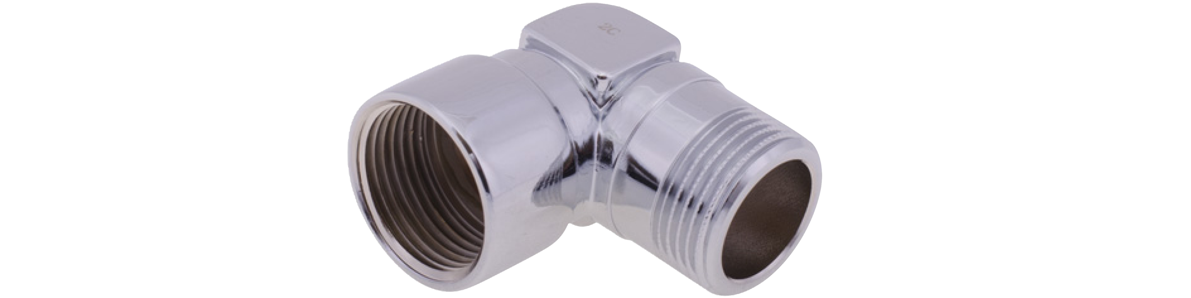 Typgodkänd vinkelkoppling med ut-och invändig gänga. Byggmått med väggbricka, centrum rör - vägg: G1/2 ca 45 mm. Butiksförpackad.