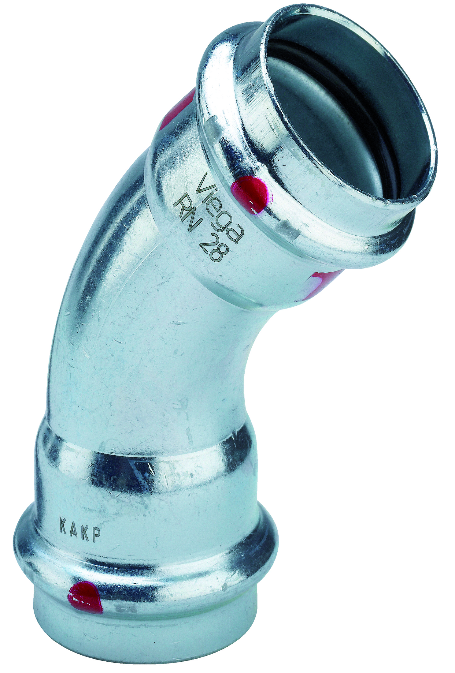 Formstabilt för snabba och rena installationer av värme- och industrianläggningar. Kall förbindning på några sekunder med alla de fördelar det innebär. Inga förbindningsställen genom lödning eller svetsning och därför heller ingen brandfara särskilt viktigt vid saneringar. Prestabo-kopplingar är försedda med SC-Contur synlig testsäkerhet. SC-Contur är märkt med röd färg. Opressade förbindningar upptäcks i tid gennom synligt vattenläckage vid påfyllning av anläggningen inom hela tryckområdet från 1,0 till 6,5 bar. Vid kontroll med luft eller inerta gaser från 110 mbar till 3,0 bar kan en synlig tryckminskning avläsas på manometern. Prestabo presskopplingar är tillverkade av olegerat stål, utvändigt galvaniskt förzinkade med en tjocklek på zinkskiktet på 8-15 micro; (blåförkromade). Prestabo-systemet omfattar två varianter av systemrör: systemrör av olegerat stål utvändigt galvaniskt förzinkade systemrör av olegerat stål utvändigt galvaniskt förzinkade med en plastmantel i polypropen (PP) i vitt (RAL 9001). Rörens och kopplingarnas storlek: 15, 18, 22, 28, 35, 42 och 54 mm, Med hjälp av de elhydrauliska systempressverktygen, och de nätoberoende batteridrivna systempressverktygen skapas en olöslig, kraftbetingad förbindning. Användningsområde för Prestabo: värmeanläggningar slutna kyl- och värmekretsar tryckluftsanläggningar industrianläggningar. Märkning av systemrören och presskopplingarna. För att undvika förväxlingar med Sanpress Inox-artiklar (i rostfritt stål) har alla Prestabo-presskopplingar och systemrör märkts med en röd symbol "Ej tillåtet för dricksvatteninstallationer". Vidare är SC-Contur märkt med röd färg. Maximal arbetstemperatur och -tryck för respektive användningsområde framgår av de tekniska underlagen. Vid industriell användning där det ställs mycket höga krav rekommenderar vi kontakt med Viega A/S.